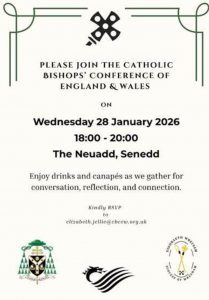 I would like to extend my sincere thanks to everyone who was able to attend our event at the Senedd last week. The Catholic Church in Wales is deeply grateful for its relationship with the Interfaith Council for Wales and for our friendships with people of other faiths. We greatly value our shared work and collaboration, and I hope the event felt, in some small way, like a thank you for the support and partnership you have shown us over the years.